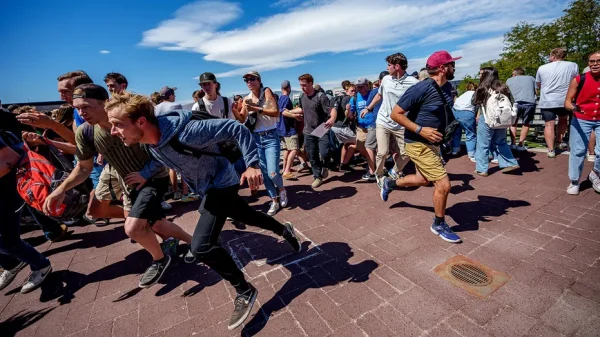 Kirk was hit with a single shot in the left side of the neck by a gunman hiding on top of a rooftop 142 yards away. Witnesses reported a gush of blood from Kirk’s wound, followed by Kirk going limp and students screaming and dropping to the floor to avoid any further gunfire. Kirk was then grabbed by six security personnel, who carried him to an SUV, which transported him to Timpanogos Regional Hospital. Less than twenty minutes later, it was announced that Kirk had died from his injuries.